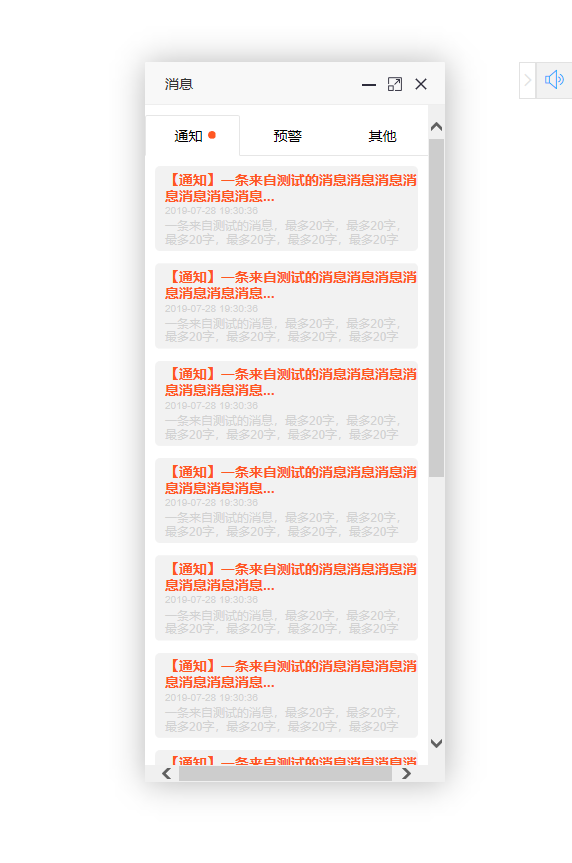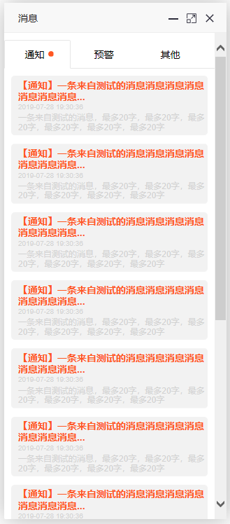 "content": [{"title": "【通知】一条来自测试的消息消息消息消息消息消息消息消息消息", "content": "一条来自测试的消息,最多20字,最多20字,最多20字,最多20字,最多20字,最多20字", "date": "2019-07-28 19:30:36", "url": "https://zengjin.work"},