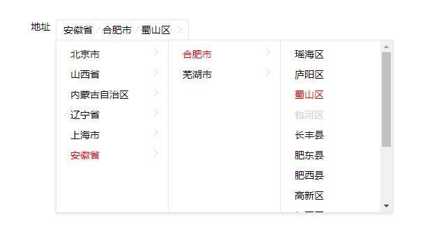 <input type="hidden" id="demo" value="安徽省/合肥市/蜀山区"/>可以设置初始值(初始值应该是data数据里能找到的),也可以不设置初始值