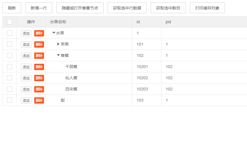 6、【增加】方法式打开或折叠任意节点(table.treeNodeOpen(o,isOpen))
